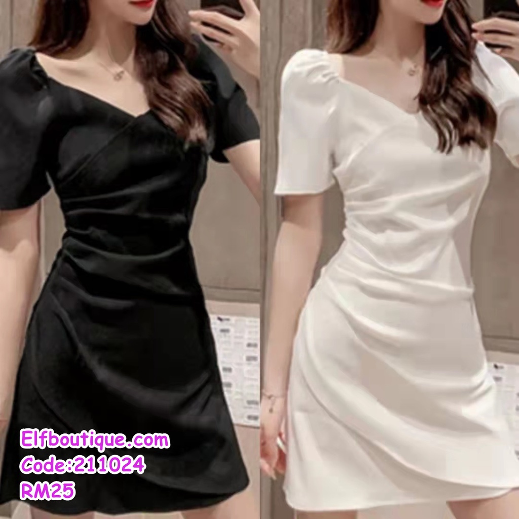 Ready Stock Korean Style Woman Short Puff Sleeve V Neck Sexy Fashionable Dress White Black Shopee Malaysia